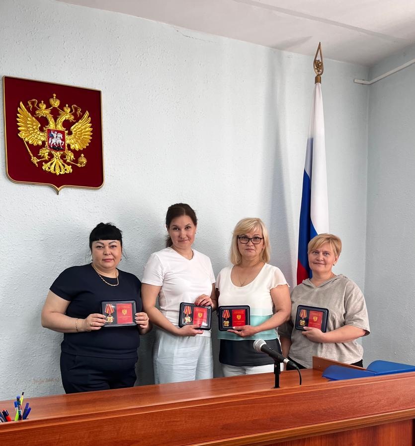 В Югорском районном суде ХМАО-Югры в торжественной обстановке прошло награждение государственных гражданских служащих. В присутствии коллектива и.о. председателя суда Колобаев Валерий Николаевич за значительный личный вклад в развитие судебной системы, всестороннее содействие в укреплении и совершенствовании правосудия в Российской Федерации наградил знаками отличия Судебного департамента при Верховном Суде Российской Федерации «За усердие» II степени следующих государственных гражданских служащих: - Вечтанову Татьяну Сергеевну, начальника отдела обеспечения судопроизводства; - Радионову Елену Мунировну, помощника председателя суда; - Чуткову Анастасию Сергеевну, секретаря суда; - Харитонову Наталью Николаевну, секретаря судебного заседания; - Шайхалова Руслана Альбертовича, консультанта. И.о. председателя суда Колобаев В.Н. поздравил государственных гражданских служащих за добросовестный труд, высокий профессионализм, добросовестное исполнение должностных обязанностей и пожелал им дальнейших профессиональных успехов!